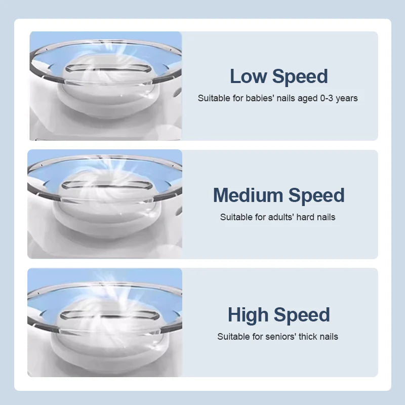Three Speed Settings Handle Everything From Delicate Baby Nails to Tough Senior Nails